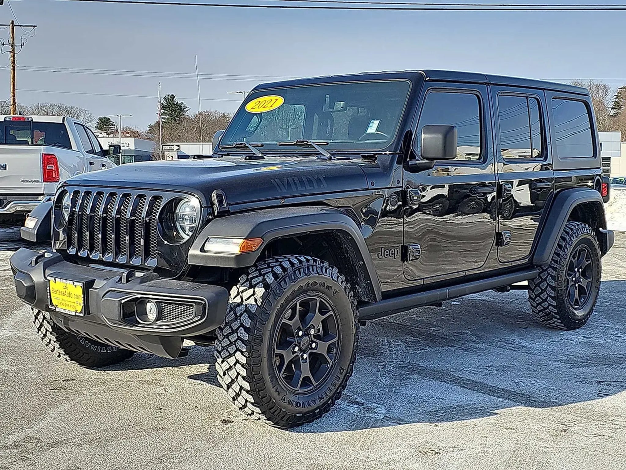 CARFAX 1-Owner, Excellent Condition. EPA 24 MPG Hwy/20 MPG City! Heated Seats, Keyless Start, iPod/MP3 Input, Back-Up Camera, 4x4, Aluminum Wheels, ENGINE: 3.6L V6 24V VVT UPG I W/ESS, DUAL TOP GROUP, 8.4 RADIO & PREMIUM AUDIO GROUP KEY FEATURES INCLUDE 4x4, Back-Up Camera, iPod/MP3 Input, Aluminum Wheels, Keyless Start Jeep Unlimited Willys with Black Clear Coat exterior and Black interior features a V6 Cylinder Engine with 285 HP at 6400 RPM*. OPTION PACKAGES QUICK ORDER PACKAGE 24W WILLYS Engine: 3.6L V6 24V VVT UPG I w/ESS, Transmission: 8-Speed Automatic (850RE), Willys, Mold In Color Bumper w/Gloss Black, Speed Sensitive Power Locks, Automatic Headlamps, Leather Wrapped Steering Wheel, Black Trail Rated Badge, 4-Wheel Drive Swing Gate Decal, Black Grille, MOPAR All-Weather Floor Mats, Willys Hood Decal, Rock Protection Sill Rails, Front 1-Touch Down Power Windows, Power Heated Mirrors, Wrangler Decal, Matte Black Jeep Badge, Security Alarm, Remote Keyless Entry, Sun Visors w/Illuminated Vanity Mirrors, Front LED Fog Lamps, LED Premium Reflector Headlamps, DUAL TOP GROUP Premium Black Sunrider Soft Top w/Dual Top Group, Black 3-Piece Hard Top, Freedom Panel Storage Bag, Rear Window Defroster, Rear Window Wiper/Washer, No Soft Top, TRANSMISSION: 8-SPEED AUTOMATIC (850RE), 8.4 RADIO & PREMIUM AUDIO GROUP Emergency/Assistance Call, Alpine Premium Audio System, Rear View Auto Dim Mirror, TECHNOLOGY GROUP Google Android Auto®, Cluster 7.0 TFT Color Display, SiriusXM Satellite Radio, SiriusXM Radio Service, For More Info, Call|USB Host Flip, Integrated Center Stack Radio, 7.0 Touchscreen Display, Air Conditioning w/Auto Temp Control, Radio: Uconnect 4 w/7 Display, Apple CarPlay®, Air Filtering, GPS Antenna Input, COLD WEATHER GROUP Heated Steering Wheel, Heated Front Seats, CONVENIENCE GROUP Universal Garage Door Opener, ENGINE: 3.6L V6 24V VVT UPG I W/ESS (STD). BUY WITH CONFIDENCE CARFAX 1-Owner Actual pricing may vary from time to time. Please see and dealer documentation fee of $889. Vehicle representation on our homepage or on 3rd party does not constitute availability. To be sure you dont miss out on availability, give us a call at and schedule a test drive or visit us at www. berteraauto.com. Vehicle pricing may change without notice. See dealer for trade assist and financing details. We are located at 539 Riverdale St West Springfield MA 01089. We look forward to seeing you soon.