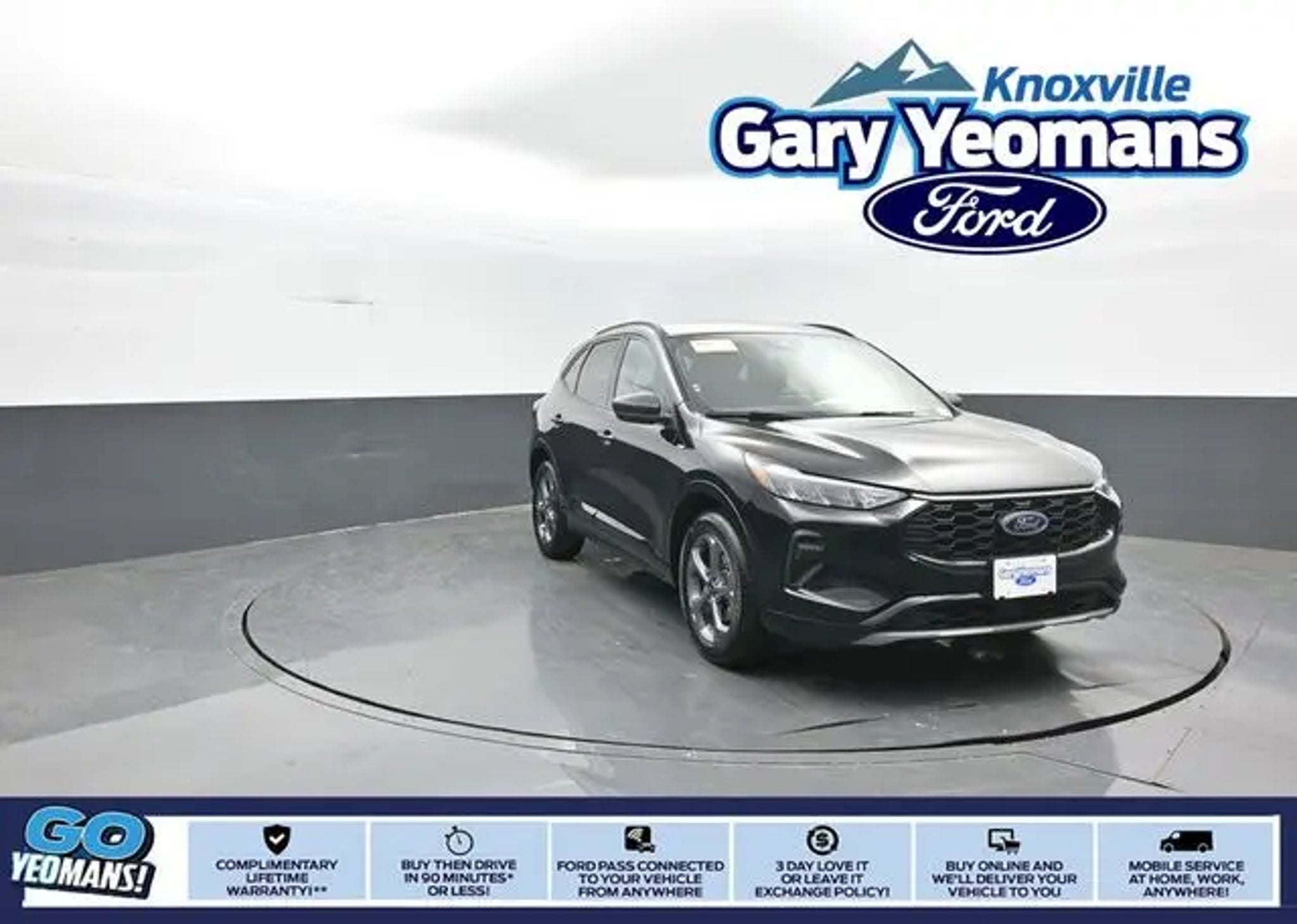 2023 Ford Escape ST-Line Black Metallic AWD 1.5L EcoBoost AWD. **INCLUDED FEATURES & OPTIONS: Equipment Group 300A, AWD, 3.81 Axle Ratio, 4-Wheel Disc Brakes, 6 Speakers, ABS brakes, Air Conditioning, Alloy wheels, AM/FM radio: SiriusXM, AM/FM Stereo, Auto High-beam Headlights, Automatic temperature control, Brake assist, Bumpers: body-color, Compass, Delay-off headlights, Driver door bin, Driver vanity mirror, Dual front impact airbags, Dual front side impact airbags, Electronic Stability Control, Emergency communication system: SYNC 4 911 Assist, Exterior Parking Camera Rear, FordPass Connect, Four wheel independent suspension, Front anti-roll bar, Front Bucket Seats, Front Center Armrest, Front dual zone A/C, Front License Plate Bracket, Front reading lights, Fully automatic headlights, Heated door mirrors, Heated front seats, Heated steering wheel, Illuminated entry, Knee airbag, Low tire pressure warning, Occupant sensing airbag, Outside temperature display, Overhead airbag, Overhead console, Panic alarm, Passenger door bin, Passenger vanity mirror, Power door mirrors, Power driver seat, Power Liftgate, Power steering, Power windows, Radio data system, Rear anti-roll bar, Rear reading lights, Rear seat center armrest, Rear window defroster, Rear window wiper, Remote keyless entry, Speed control, Speed-sensing steering, Speed-Sensitive Wipers, Split folding rear seat, Spoiler, Sport steering wheel, Steering wheel mounted audio controls, SYNC 4, Tachometer, Telescoping steering wheel, Tilt steering wheel, Traction control, Trip computer, Variably intermittent wipers, Vinyl/Cloth Front Sport Contour Bucket Seats, and Wheels: 18 Rock Metallic Painted Aluminum. At Gary Yeomans Ford Knoxville we offer Market Based Pricing, so please call 865.687.2100 to check on the availability of this vehicle.